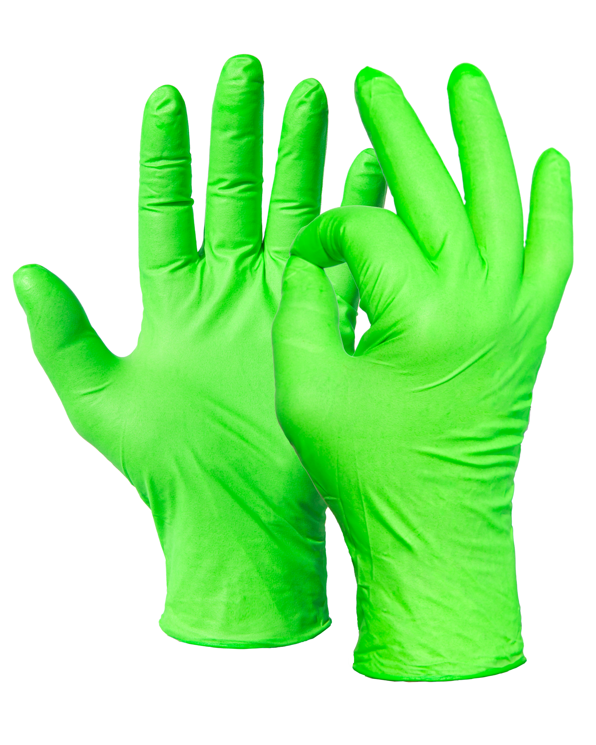 Guanto monouso in nitrile ad alta visibilitร di colore verde fluo,